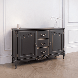Мебель от испанского бренда «Панамар». Тумба, предназначенная для гостиной или спальни, оснащена удобными распашными дверями и выдвижными отсеками. Облицовка изделия выполнена из шпона ореха или черешни. |