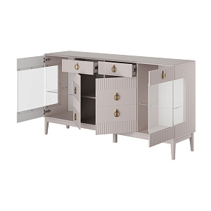 Изделие оформлено в креативном стиле ар деко. Производитель тумбы с раздвижными дверьми – фабрика Fratelli Barri. Лакированная поверхность мебели смотрится очень «нарядно», оттенок изделия – белый. |