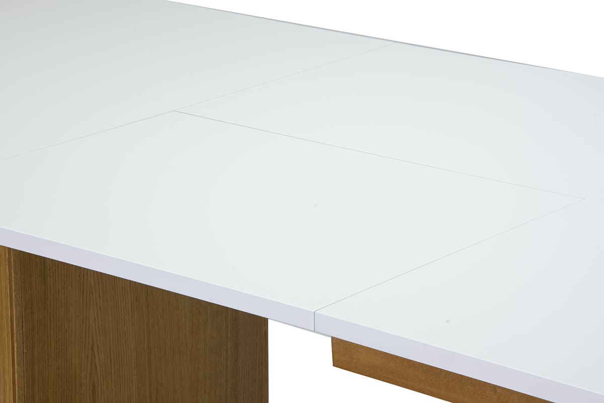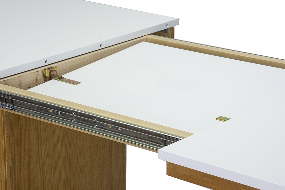 Cтол Моника-15 М - современный обеденный стол с металлическим основанием со столешницей с синхронным механизмом раздвижения. Столешница может быть выполнена из австрийского 23 мм МДФ , покрытого 0,4-0,6мм шпона дуба, или гладкого МДФ под эмаль, на выбор. Подстолье стола имеет современные металлические диагональные ноги.
