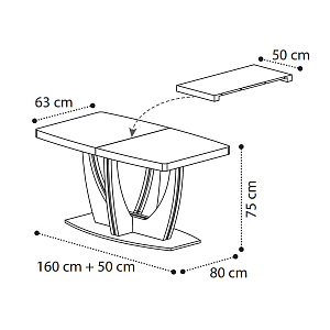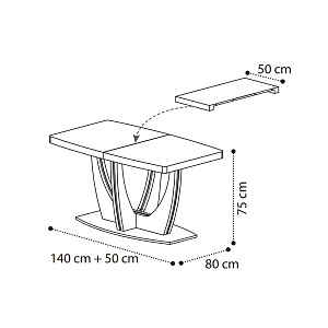 KRYSTAL 160 см с 2 вставками, раскладной, цвет: белый ...