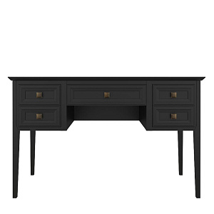 Коллекция мебели Tesoro Black отличается строгими геометрическими формами и лаконичным дизайном. В неё входят журнальный столик, тумбочка под ТВ, шкаф для одежды, комод и прочие предметы мебели. Все они выполнены из массива, мдф и покрыты чёрной матовой краской. Чтобы подчеркнуть контраст между тёмным деревом и золотистыми деталями, на фасады наносят глянцевый лак.