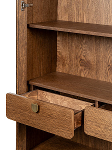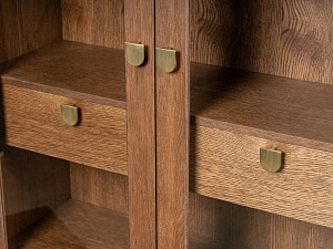 Стиль минимализм и натуральное дерево идеально гармонируют в Коллекции мебели Gven. Использование МДФ и шпона дуба обеспечивает долговечность и эстетическую привлекательность, а ножки из массива дуба добавляют прочности и стабильности. Мебельные ручки под латунь придают коллекции утончённый вид.