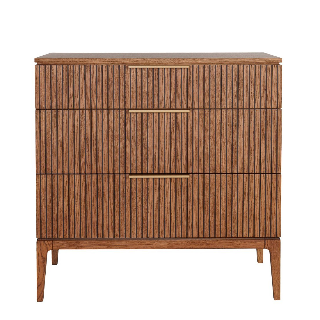 Комод Bryce с 3 ящиками выполнен в цвете Дуб Честерфилд из массива дуба, МДФ и шпона дуба.